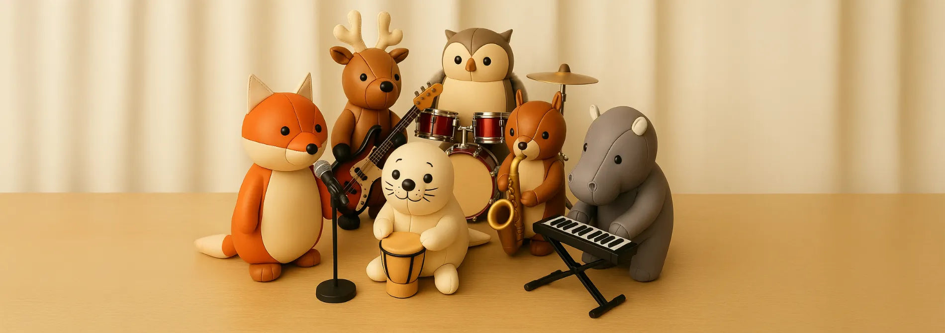 The toys are uniquely designed with their use of luxury vinyl material (vegan leather) and minimalistic color hues and natural woods.