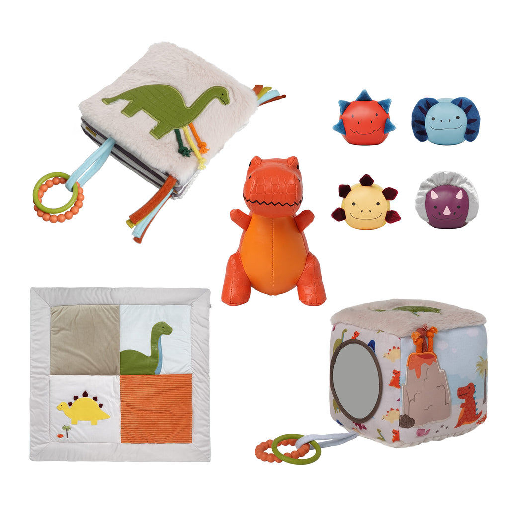 ¡Les Amigos Dinos son adorables compañeros de juego con una variedad de materias, texturas y colores! Explora el mundo de los Dinos con Hector el Braquiosaurio, Penelope la Triceratops, Dimitri el Dimetrodón y sus amigos de las tierras volcánicas.